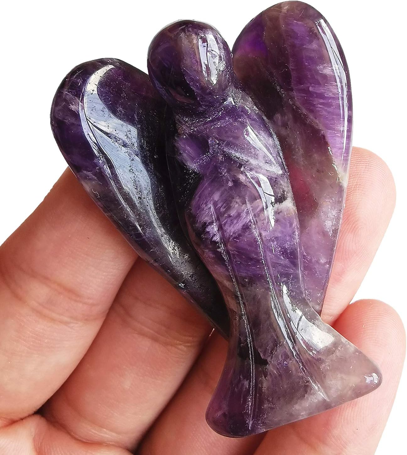 Amazon Com Gemgogo Natural Amethyst 2 Inchs Hand Carved Crystals And Healing Palm Stone Guardian Pocket Angel Statues Figurines Home Kitchen